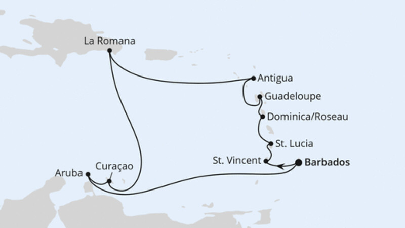 | 22 | Bridgetown/Barbados | 08:00 Uhr | 21:00 Uhr |