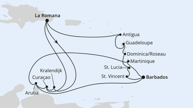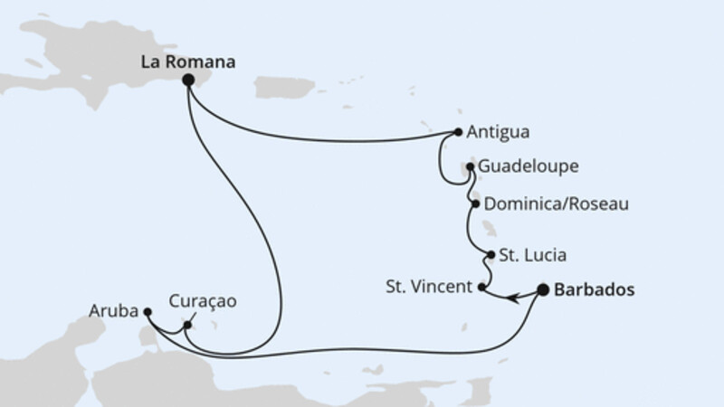 | 14 | Bridgetown/Barbados | 08:00 Uhr | 18:00 Uhr |
