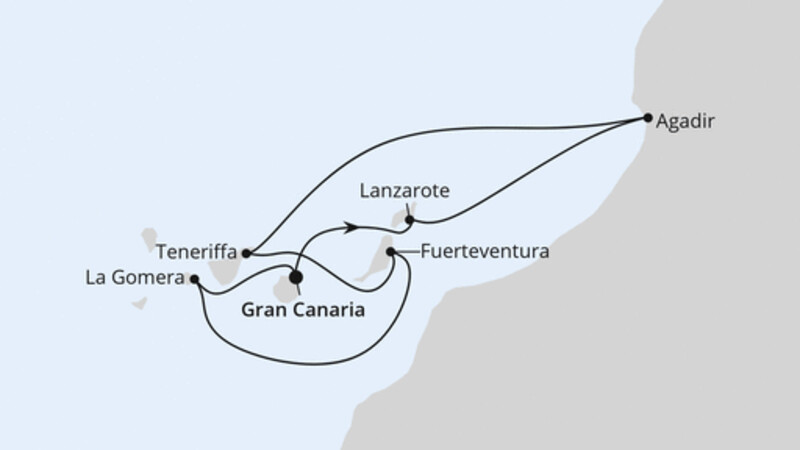 | 7 | Las Palmas/Gran Canaria | 05:00 Uhr | 22:00 Uhr |