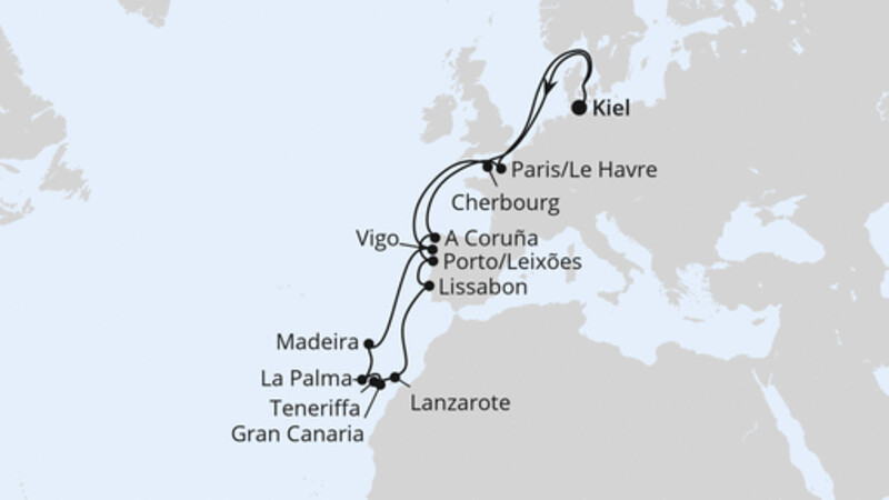| 17 | Porto/Leixoes | 07:30 Uhr | 17:30 Uhr |