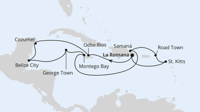 | 6 | Bridgetown/Barbados | 07:00 Uhr | 23:00 Uhr |