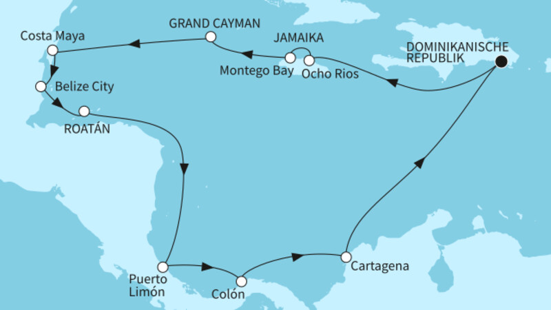 | 02.02. | Montego Bay (Jamaika) | 07:00 Uhr | 22:00 Uhr |